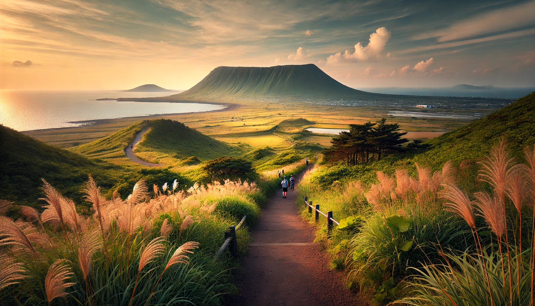 - 제주도의 독특한 지형 감상 - 초록빛 평원과 화산 분화구를 내려다보는 색다른 경험