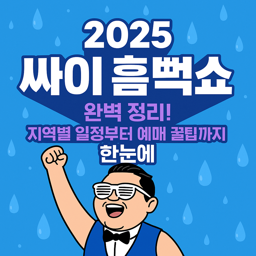 싸이 흠뻑쇼는 단순한 콘서트를 넘어선 여름 시즌 대표 축제입니다. 올해도 전국을 무대로 짜릿한 물세례와 흥 폭발 무대가 펼쳐질 예정이니, 꼭 티켓 예매 놓치지 마세요. 사전 준비만 잘하면 여름의 스트레스를 한 방에 날려버릴 수 있는 최고의 경험이 될 거예요!